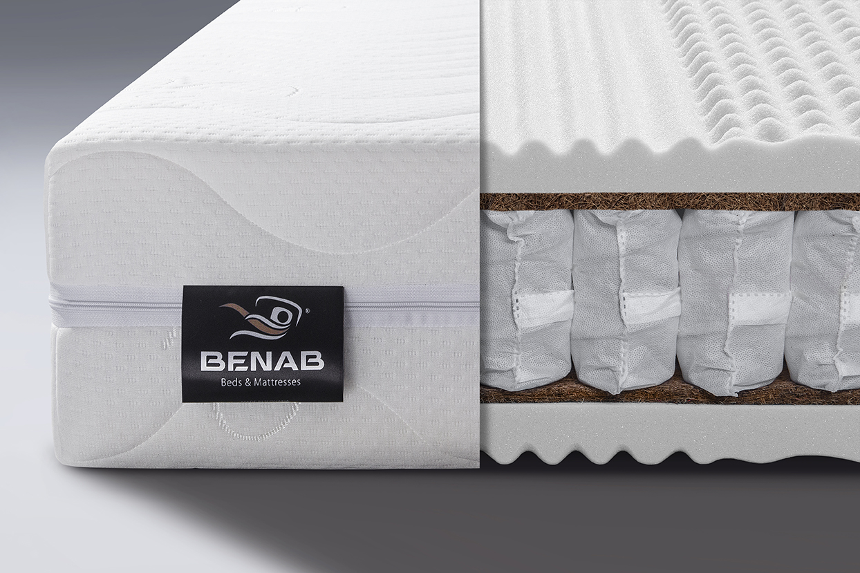 Matrac Fyzio Coco Plus je vysoký 27 cm a predstavuje kombináciu komfortu a pevnej opory vďaka kvalitnému taštičkovému jadru. Jadro matraca tvorí 7-zónová taštičková pružina, ktorá zabezpečuje anatomickú podporu a presné prispôsobenie sa telu, čím pomáha udržiavať správnu polohu chrbtice počas spánku.
