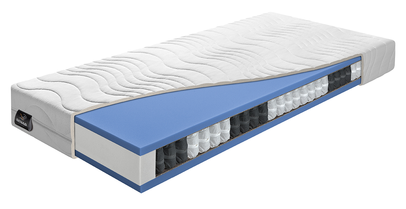 Použitý materiál PUR35kg/m3, taštičková pružina 250 ks/m2 – 7 zon, PUR 35kg/m3