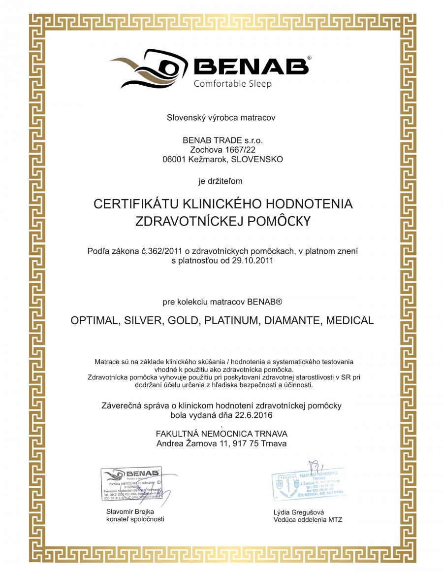 https://zdravotnicke-matrace.sk/d/matrac-fyzio-gold/17745Matrace máme už pol roka, sme s nimi veľmi spokojní. Bol to atypický rozmer matracov, ale výroba rýchla, komunikácia výborná, doprava bez komplikácií.... Ako bonus slovenský výrobca. Vrelo odporúčam. Ďakujem more_mstracov.