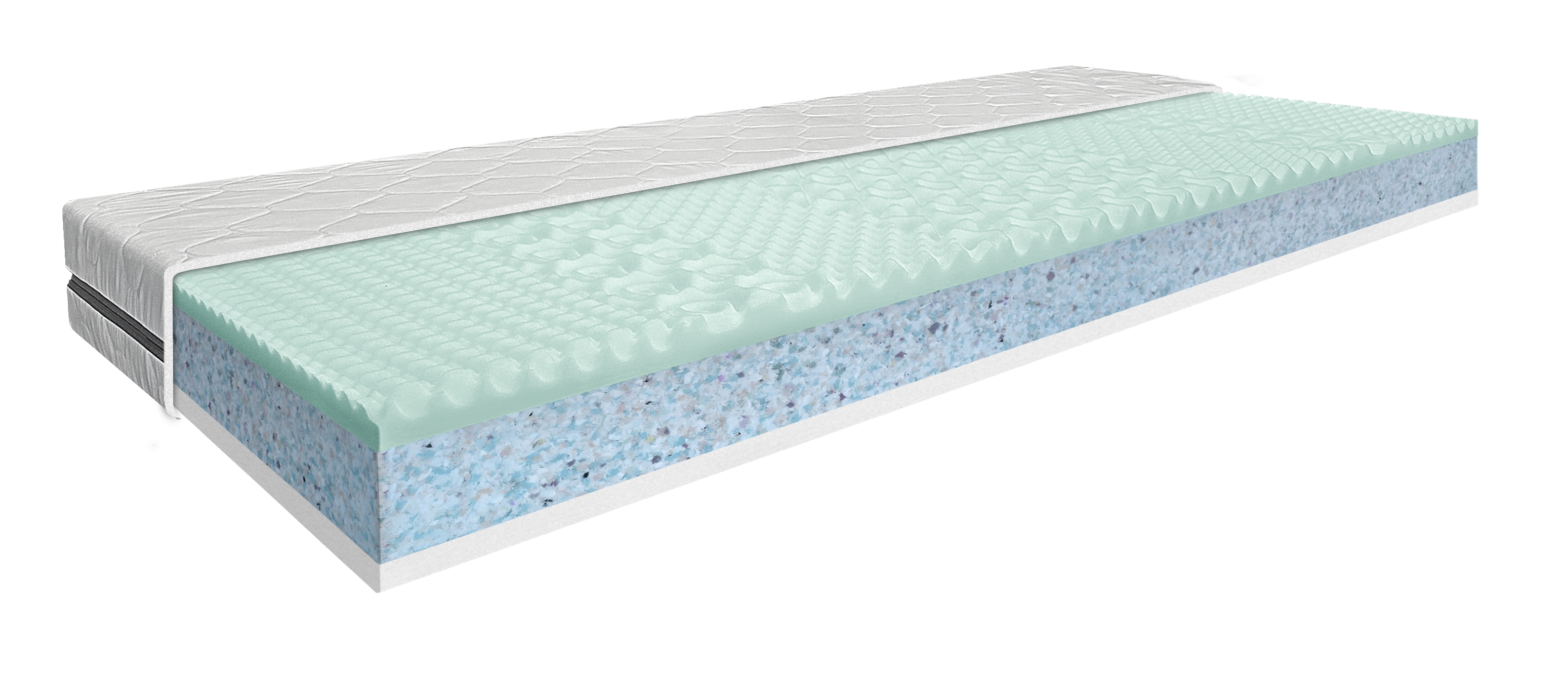 Použitý materiál PUR 7 zón profil 28 kg/m3, POE/RE pena 70 kg/m3, PUR 28kg/m3
