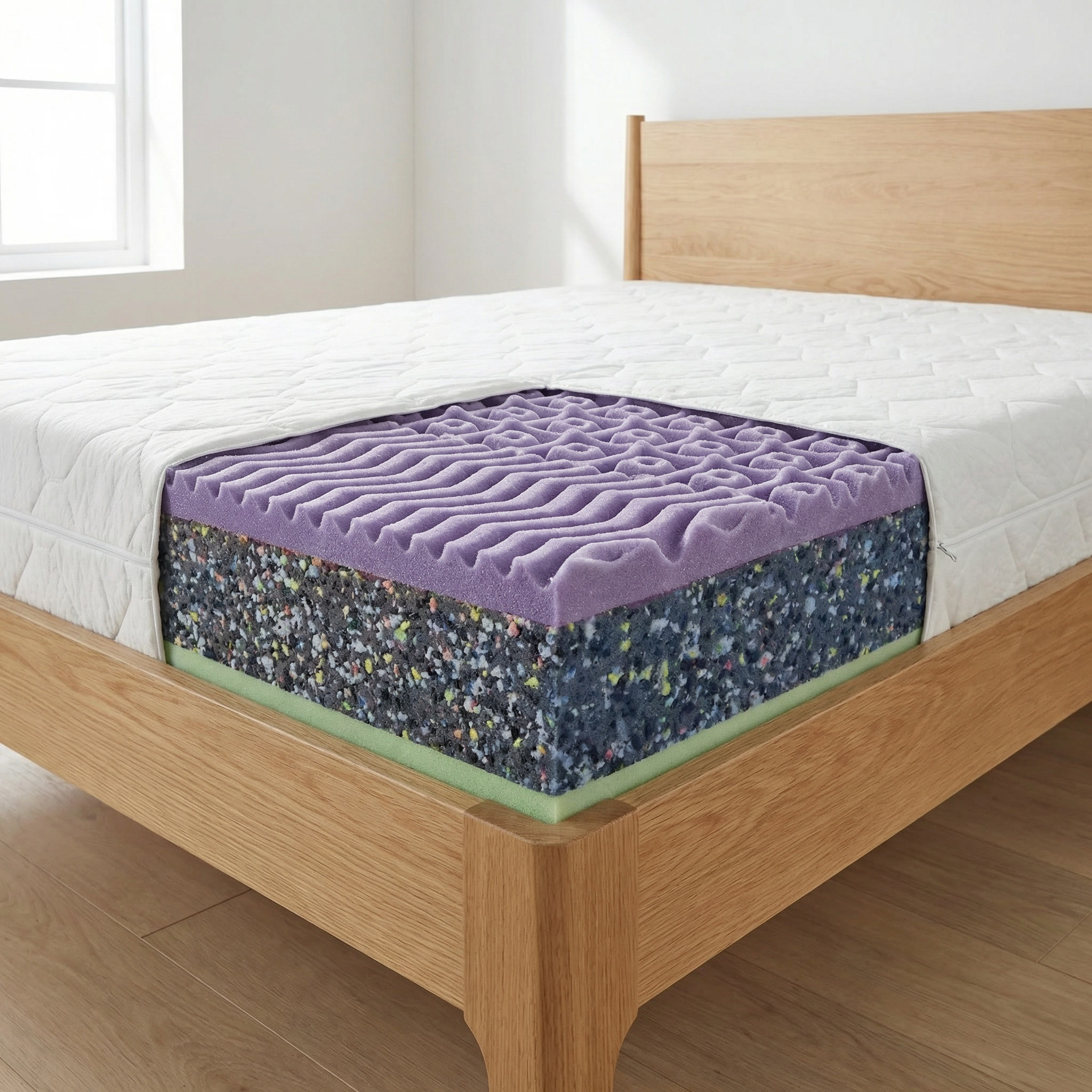 POE/RE PENA RE pena je recyklovaná drvená polyuretánová pena a vyrába sa spájaním rôznych materiálov pod silným tlakom. RE pena dodáva matracom vyššiu tuhosť a teda aj nosnosť.