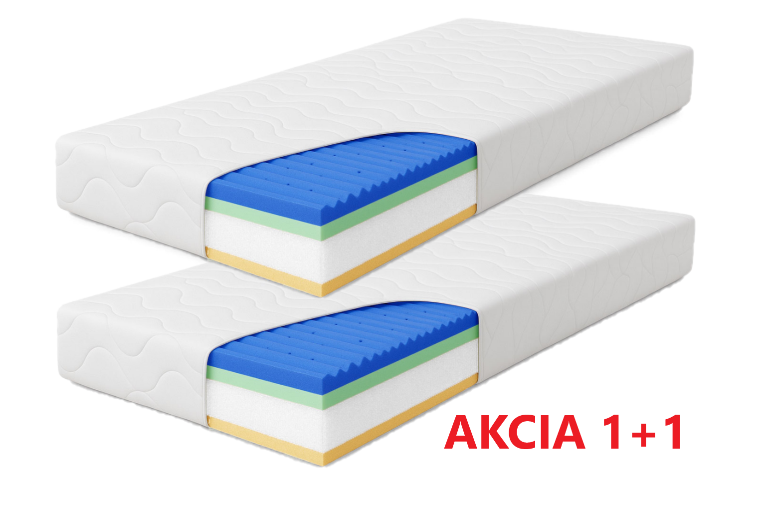 Matrace máme už skoro rok. Objednali sme to s priateľom, a obaja sme veľmi spokojní. 1+1 akcia bola pre nás nejlepšou možnosťou, čo sme našli, takže dostali sme 2 matrace za nízku cenu a realtívne za dobrú kvalitu. Určite odporúčame.