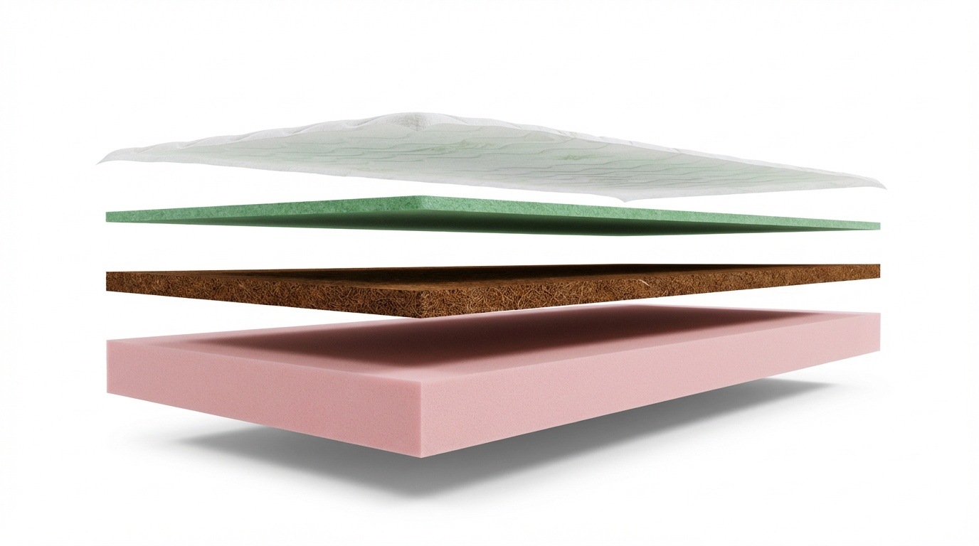 Použitý materiál PUR pena / Kokosová vrstva / PUR pena perforovaná