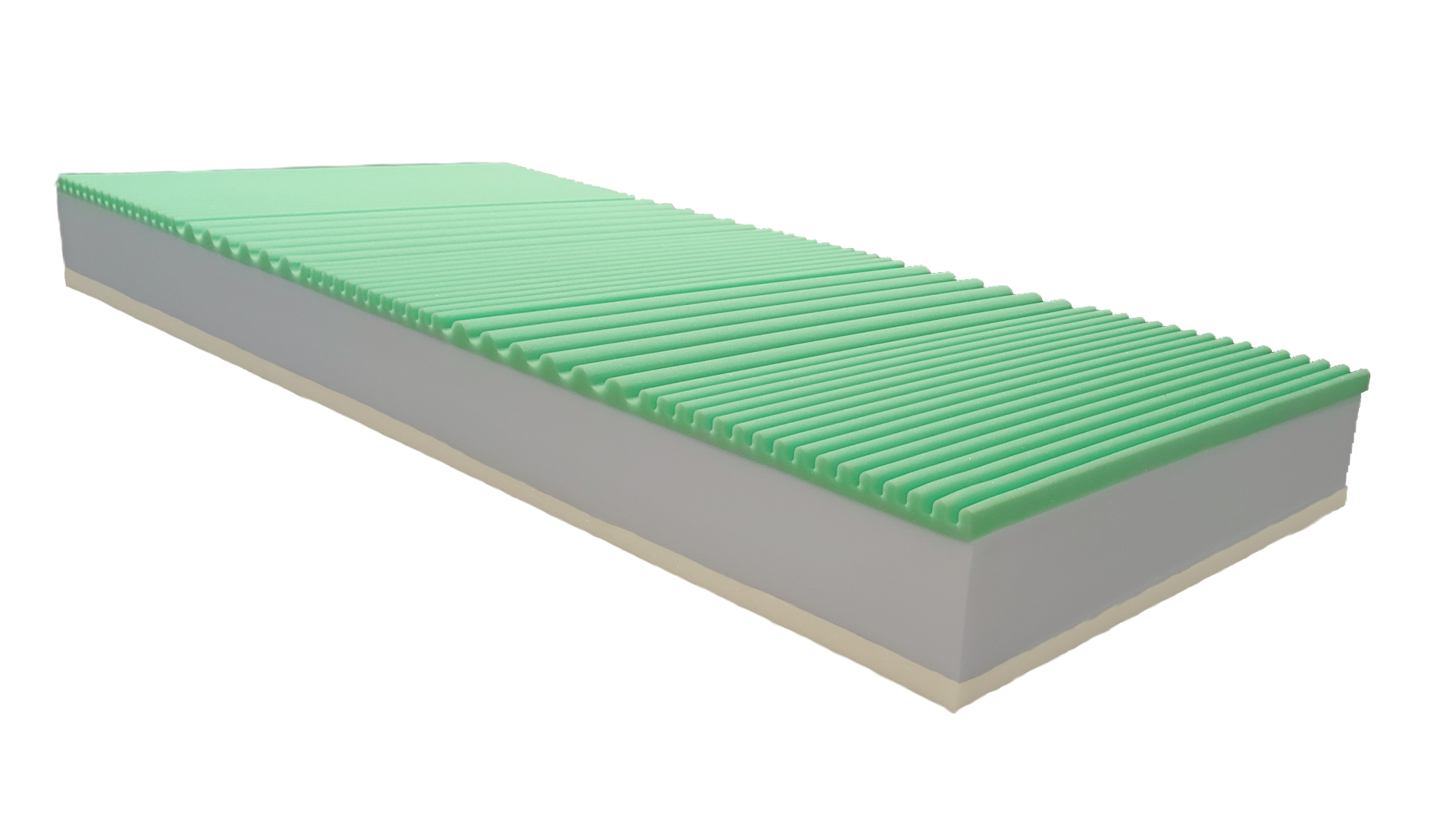 Použité materiály zaručujú optimálnu oporu tela, dlhú životnosť a vysoký komfort – VISCO pena 55 kg/m³, PUR pena so 7-zónovým profilom 35 kg/m³ a PUR jadro 35 kg/m³.