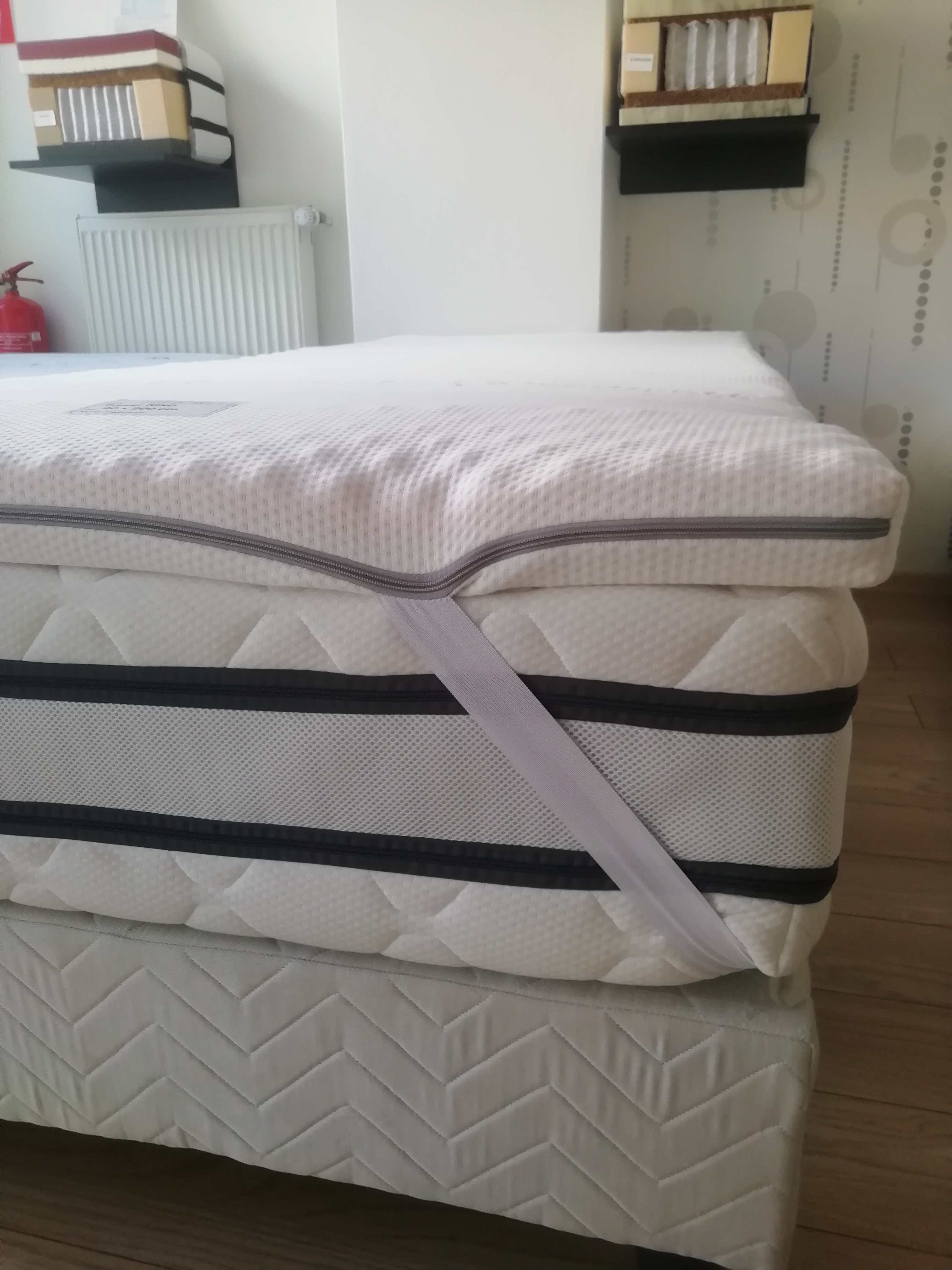 Určite neprehliadnete aj široké upínacie pásy po bokoch, vďaka ktorým sa topper jednoducho upne o spodný matrac a nešmýka sa tak po povrchu.Pozrite obrázky. Vrchné matrace vyrábame aj v atypických rozmeroch a v prípade záujmu o atyp nas kontaktujte telefonický alebo emailom.