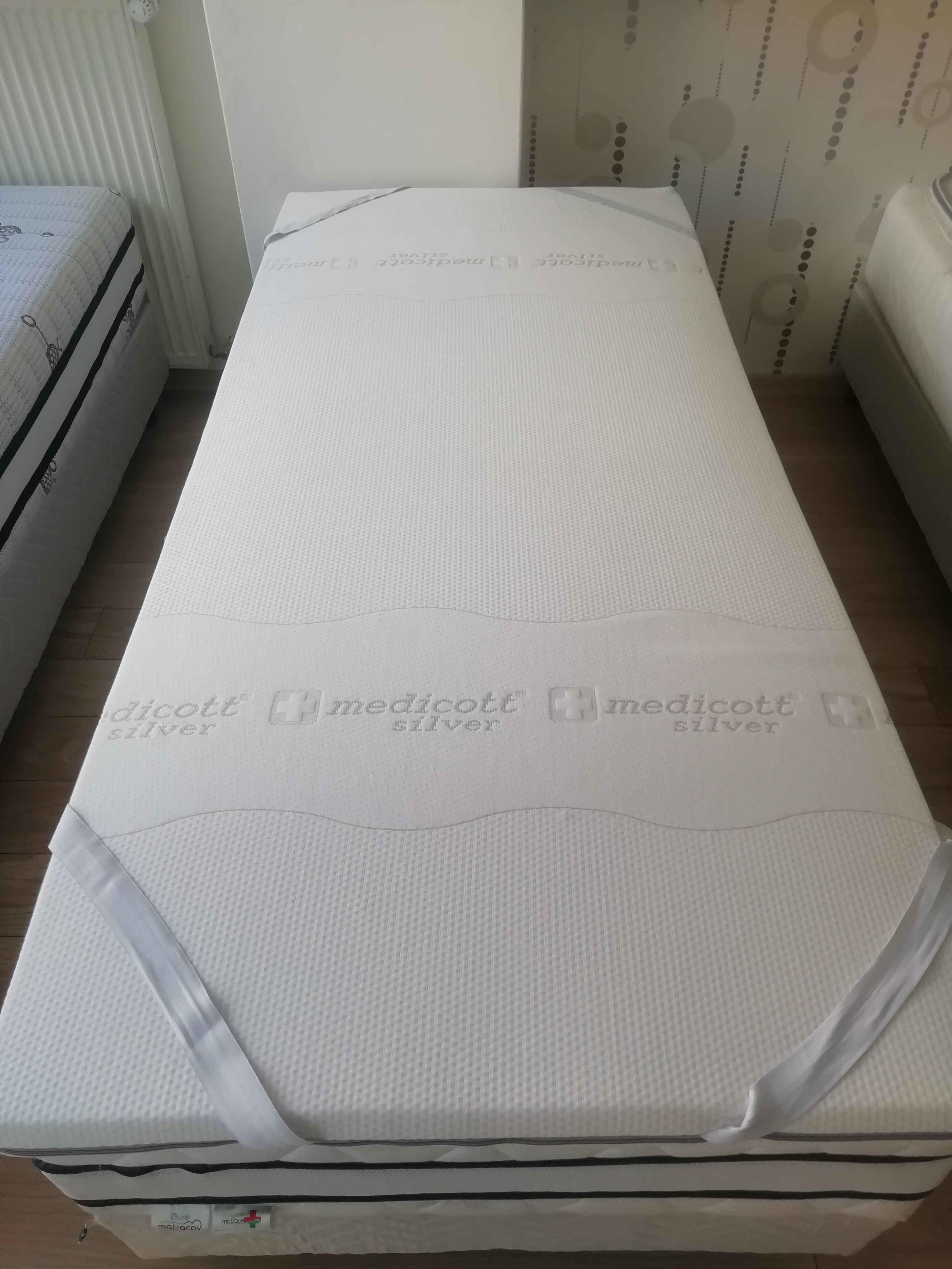 Topper je vyhotovený v poťahu Mediccot Silver, ktorý svojou kvalitou a zložením patrí medzi najlepšie na trhu, má vynikajúce antibakteriálne vlastnosti dosiahnuté bez použitia chemických látok, splna prísne podmienky kvality OEKO-TEX, je odzipsovateľný a prateľný na 40°C.