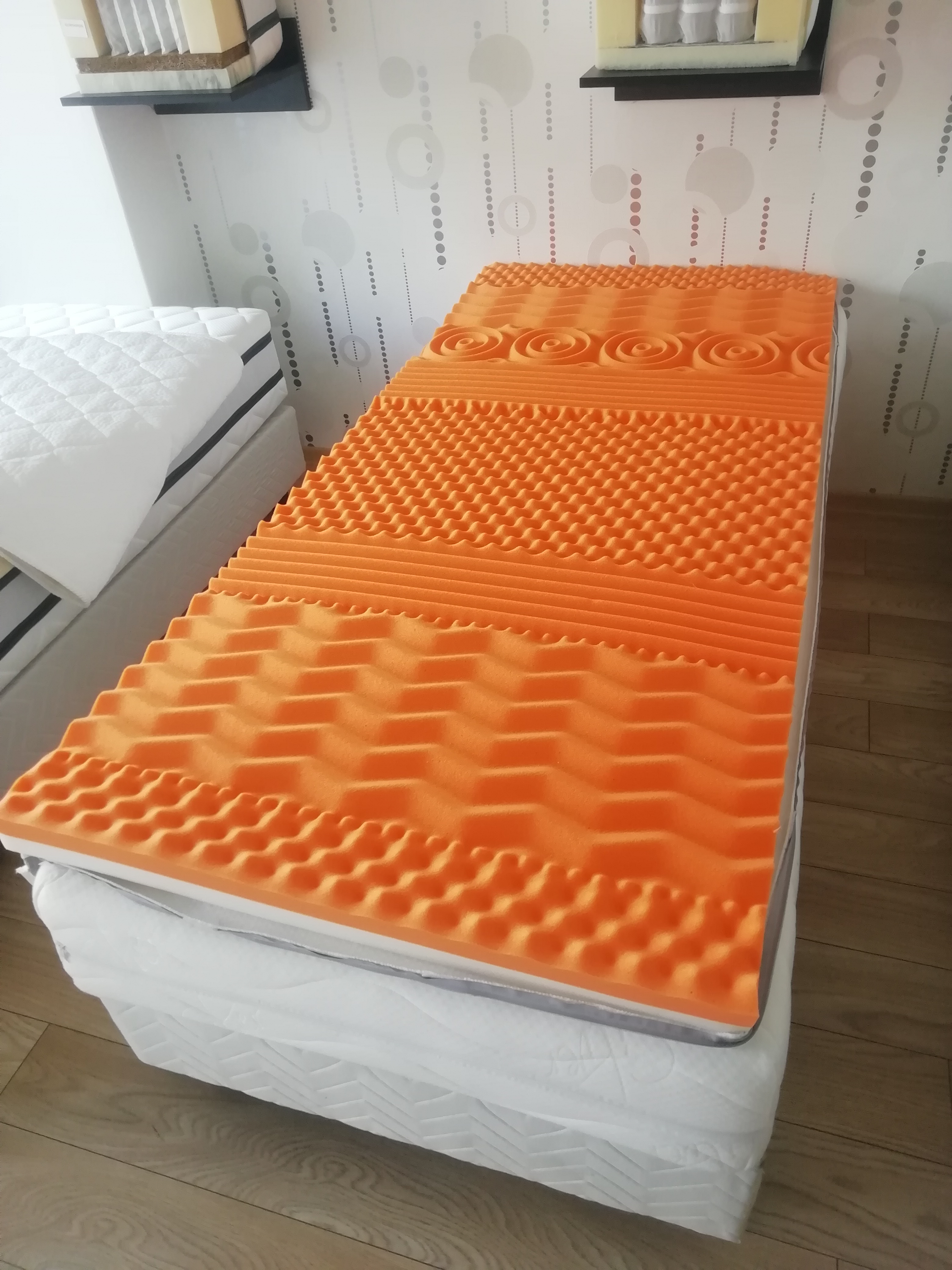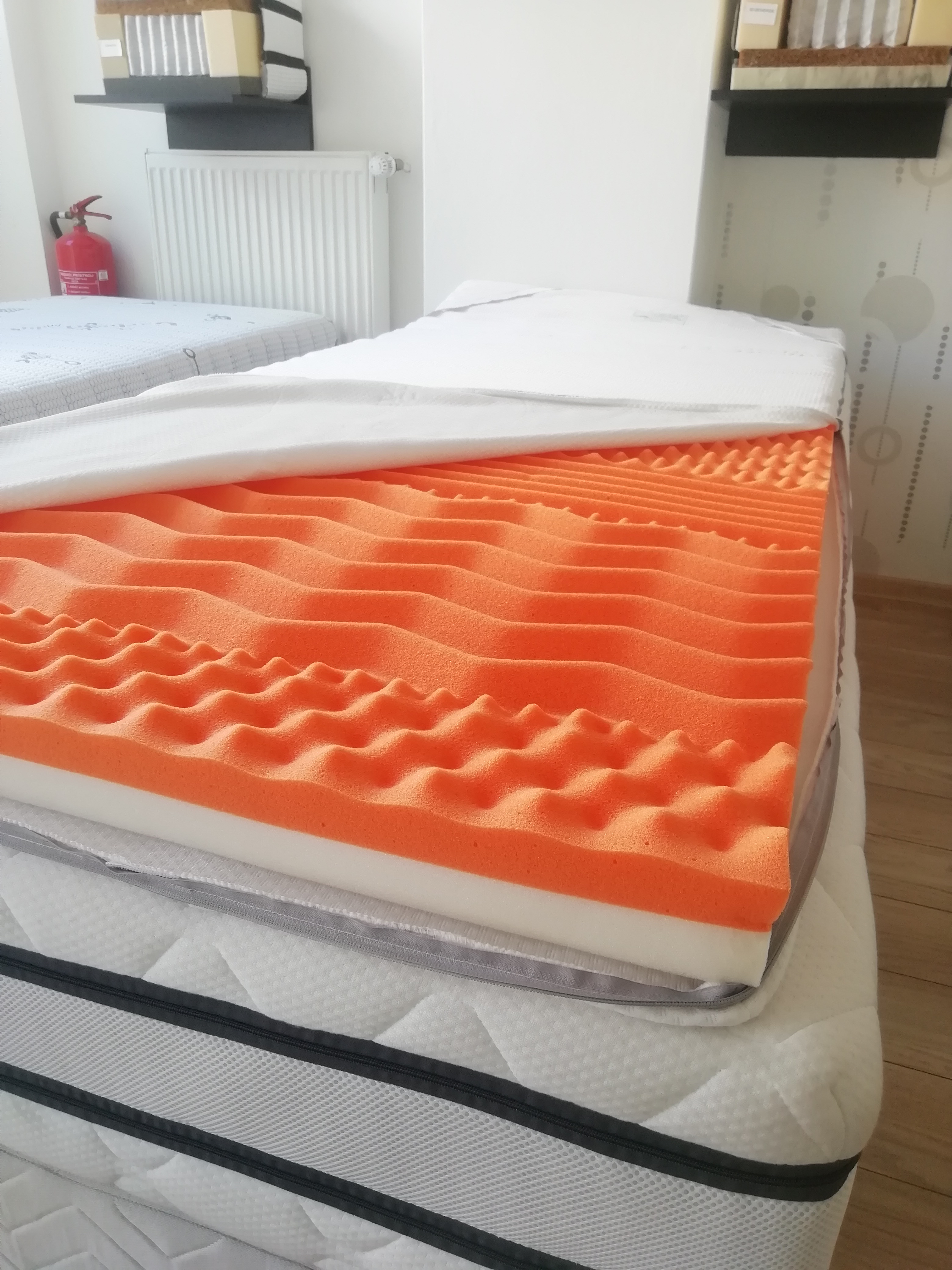 Určite neprehliadnete aj široké upínacie pásy po bokoch, vďaka ktorým sa topper jednoducho upne o spodný matrac a nešmýka sa tak po povrchu.Pozrite obrázky. Vrchné matrace vyrábame aj v atypických rozmeroch a v prípade záujmu o atyp nas kontaktujte telefonický alebo emailom.